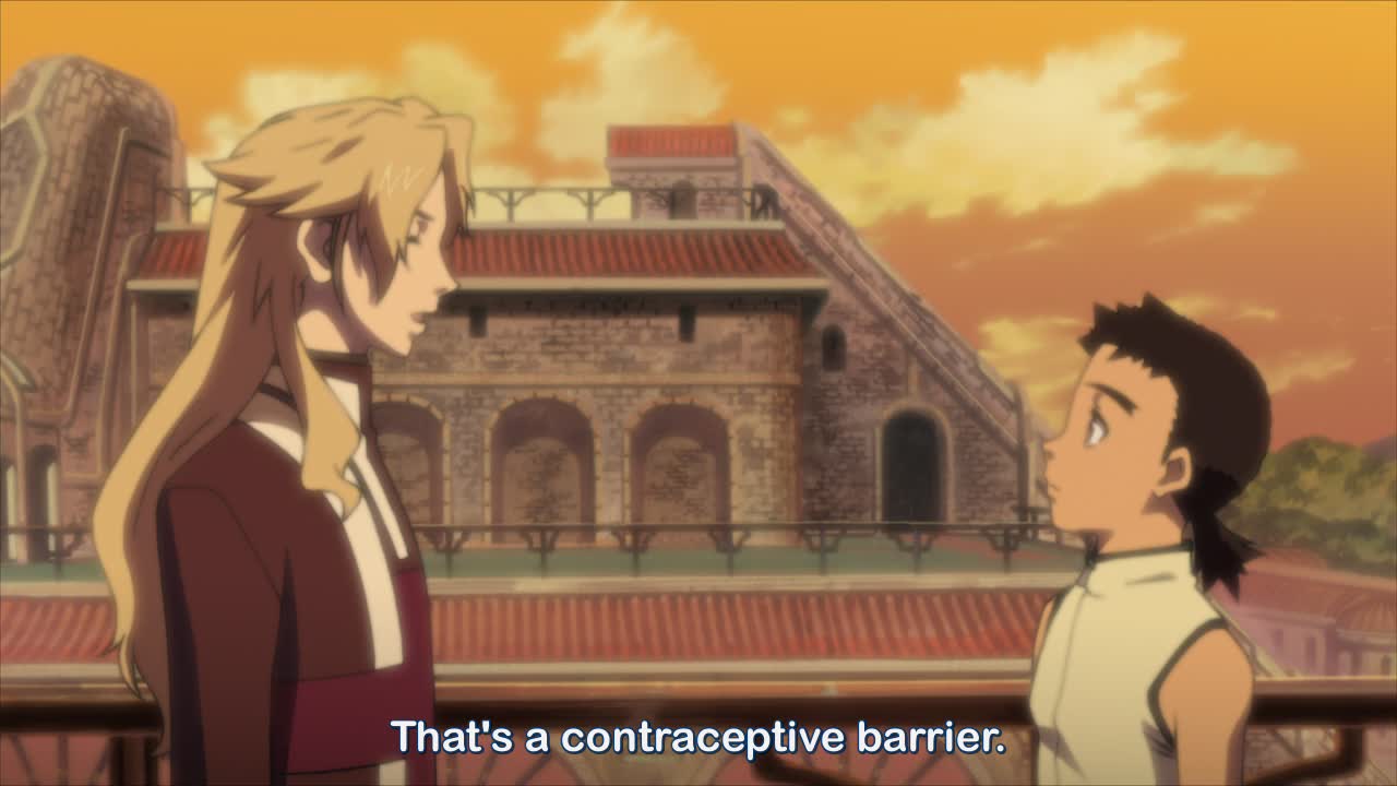 Oh, what? Really? REALLY!?! You go through all this trouble to set up a unique, non-Earth world, get extra-length episodes to have the room to tell the story you want to, and you still set OVER HALF of the show in a more or less traditional Japanese-style school setting? In which there is no mech combat, and where the church ensures that none of the political tensions from the outside impact school life? Sighhhhhhhhhhhhhhhhhhhhhhhhhhh.
