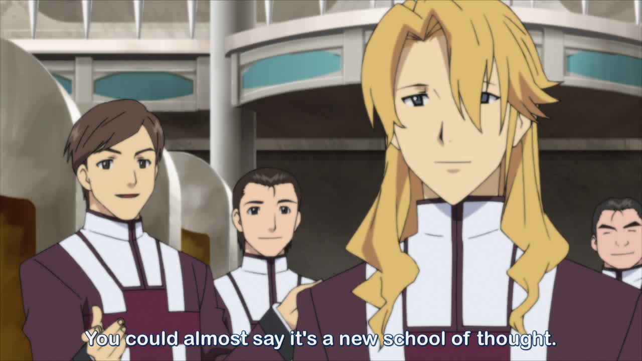 And yet, for every new idea or twist on a tired cliché the show offers, there are two things that drive me crazy. The show brings up a lot of ideas and concepts, then either has them be of no consequence or never mentions them again. For example, male pilots are highly prized, and therefore carefully controlled by the rulers of the various countries. There is quite a bit of time devoted, by both Kenshi and another male character, Ceres, to agonizing over having no freedom to choose their path in life, or even who they are allowed to love – several characters mention that the “seed” of particularly strong male pilots has been traded for vast fortunes in the past. The power of the various countries is directly tied to the strength of their handful of pilots, though, so it’s a conflict that will be hard to resolve. So instead, the show just… doesn’t. Kenshi is allowed to do whatever he wants, and the harem he assembles crosses every national border, so the issue is never explored again.