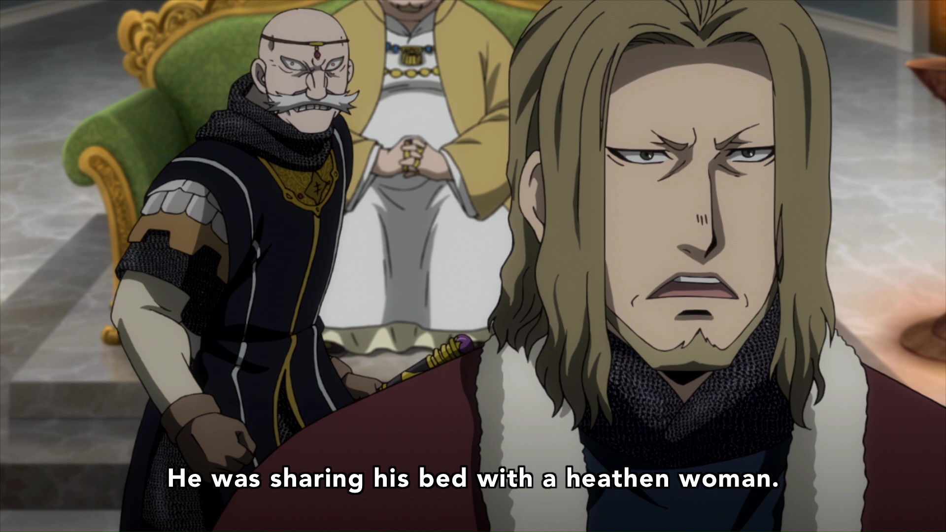 The middle part of the episode is taken up by an interlude in Ecbatana, where the cracks in the Lusitanian hierarchy finally become a deep fissure. Bodin remains the righteous ass he always is, and Guiscard gets to show that he is the one who holds all the cards in a remarkably mundane but vicious way. This does lead me to wonder what will become of Bodin and his recently-introduced Temple Knights, though I’d put good money on them being the next major obstacle Arslan is required to face.
