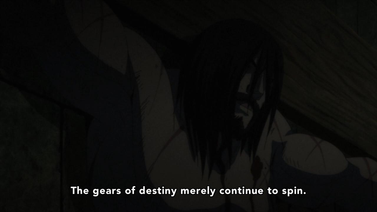 Another weird thing in this episode is Andragoras’ rambling about prophecy. I’m not opposed to the exploration of free will in my anime, à la Escaflowne or Princess Tutu, but that theme ran through those two shows from top to bottom. Episode 22 of 25 is way too late in the game to introduce a concept this weighty as a primary plot point or aspect of the world. I kind of hope Andragoras is just putting Hermes on.