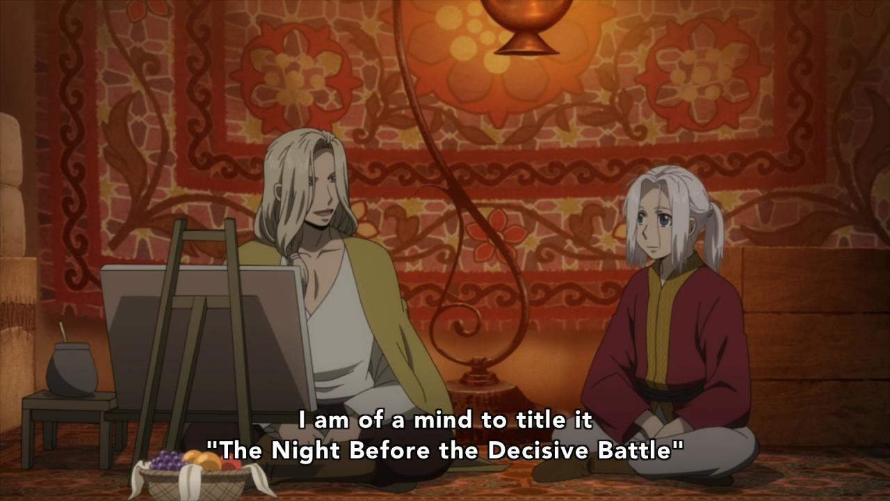”Man, I hate that guy.” – bothAlso notable is that Arslan actually does something productive in this episode with no meddling at all from Narsus, although it is a little weird that that something is basically to suggest that the new recruits get rudimentary combat training.