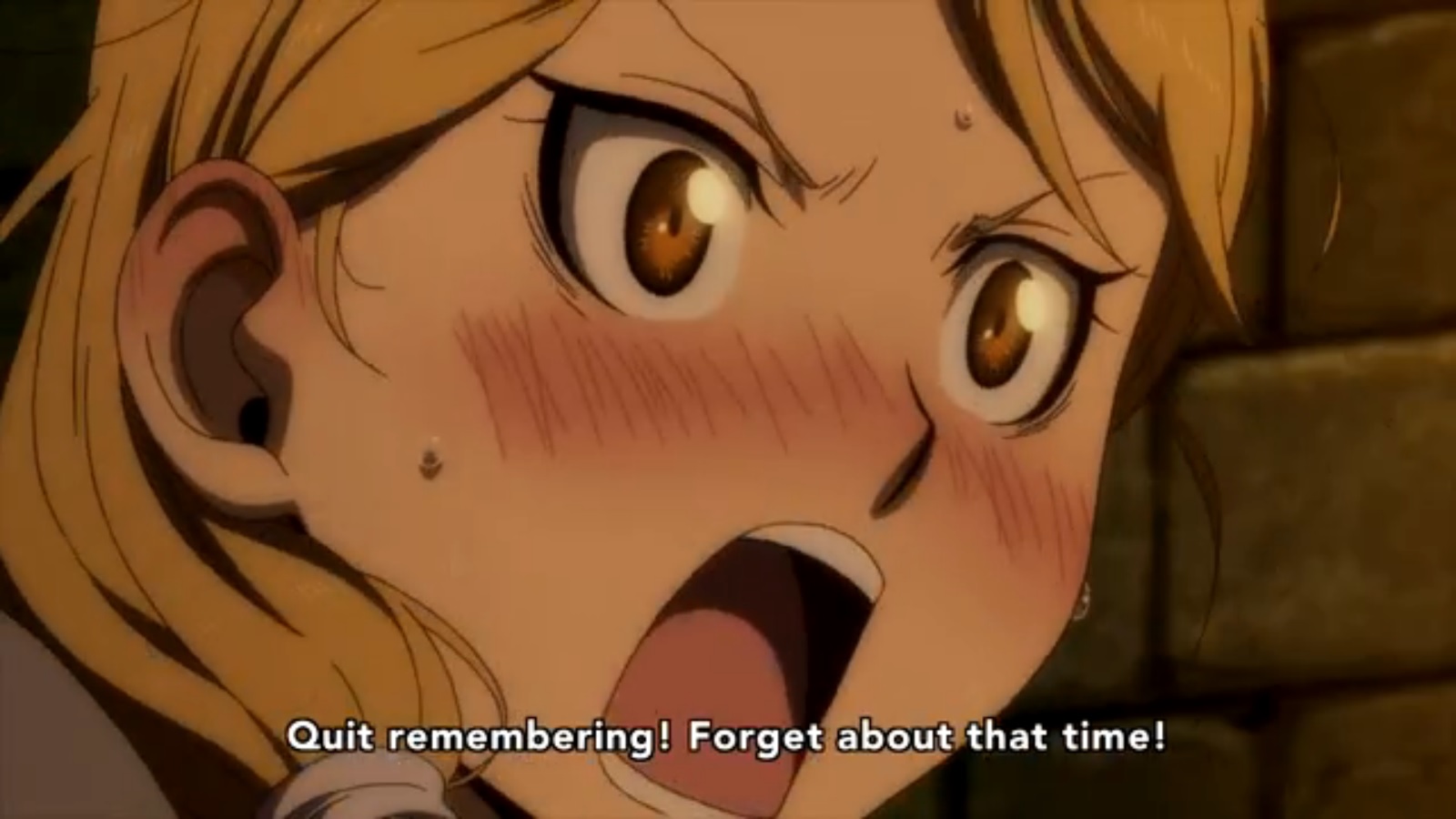 Oh, screw you, show! I can’t even tell what to be angrier about – That Etoile starts falling for Arslan on the same day her father figure was killed in front of her and tens of thousands of her countrymen died all around her, or that she starts acting more and more like a woman as soon as her hair is revealed. If it’s not her suddenly wide, ineffectual sword swings, it’s her high-pitched screeching when she yells, or some other reminder that she’s female.