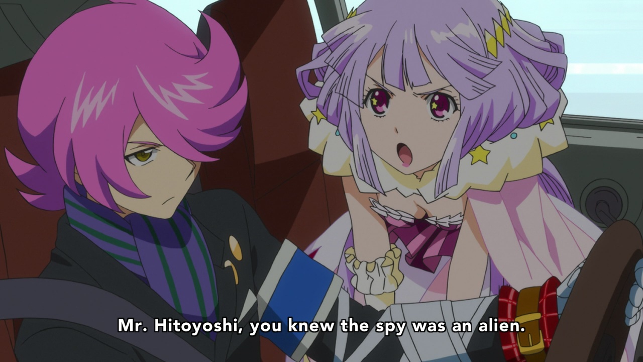 Hoo boy, this first episode was a doozy. It should be obvious from the incredibly streamlined description I gave above that Concrete Revolutio comes on fast. It starts off by throwing a lot of worldbuilding, alien fights and flash-forwards around in a big hurry. While I was initially a bit overwhelmed, the story soon comes together and became a fun ride with enough craziness to keep me on my toes.