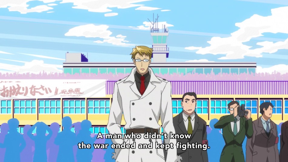 We are started off with a television announcement that a man in the south who was fighting a long ended war has returned to Japan. The camera pans to a blonde man in a white coat whistling a tune to himself as he walks away from the airport where said plane is landing. We are then swung around to a bomb going off in a restroom of an airport. The police are trying to investigate when detective Shiba notices Jirō and company walking around in the background of a news report on TV. Detective Shiba possesses a metal arm and after trying to pry information out of the Superhuman Bureau we learn that he is in fact a robot.