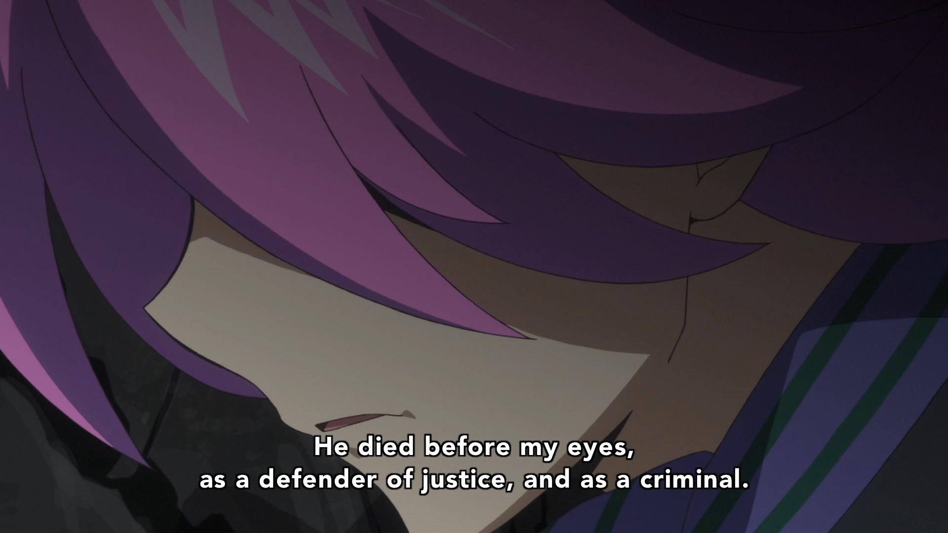Conspiracy? Given the levels of conspiracy we know to be happening in the present, it’s a safe bet. But orchestrated by whom? And what prompted the abductions in the first place? And what, exactly, killed him? This is the kind of detail I worry about being lost in the show’s torrent of happenings. The show seems content for now to ruminate on the nature of morality (which does seem to be the general theme), but this episode seems even less focused than last one. Jiro gives a brief speech about moral ambiguity, but it’s based largely on his understanding of the Rainbow Knight as, well, a defender of justice and as a criminal. The Rainbow Knight may have been a vigilante who identified as an “ally of justice” rather than a direct dispenser of it, but that comes off as simple humility without seeing him do anything definitively evil. While kidnapping isn’t usually a first line of defense, if the Rainbow Knight was up against people willing to defame and kill him to release the kids (and assumedly to further their fascist agenda), I feel like it’s implied to the audience that he still had the moral high ground, which kind of makes Jiro’s speech fall flat.