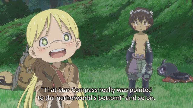 Speaking of both cave diving culture and delusions, does Riko really think that she and Reg are just going to waltz into the Seeker Camp and everyone there is simply going to let them continue to descend? I mean, I guess she does now, since Habolg gave them some supplies and told them that she already has a personal relationship with the camp boss, but surely her plan was to stop there even before that revelation.