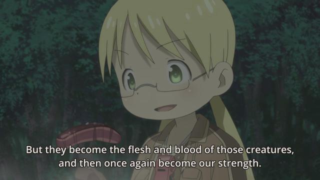 Where did the Moon Whistle getting eaten come from? He’s pretty freshly dead. Maybe he was part of Leader’s expedition to retrieve Riko and fell – if so, maybe Leader and their remaining companion will venture into the Forest of Temptation after him, if not after Riko, and we’ll see Leader again after all.