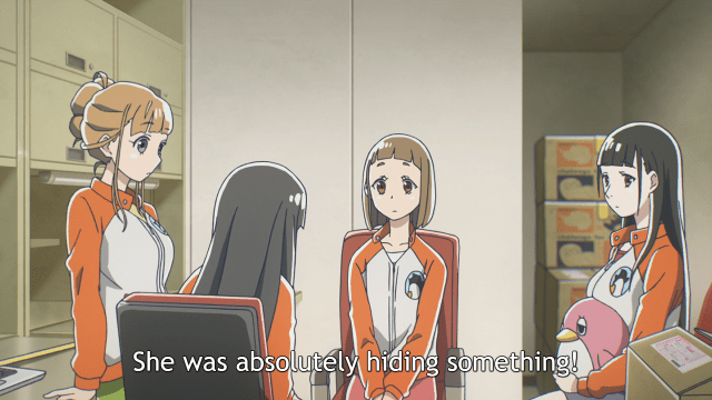 I heard you say “sora” in your title drop here, Shirase. Well, think it. Or whatever. You were the one who said “uchuu” in the first episode, too – that wasn’t part of a title drop, but I thought it was implied.