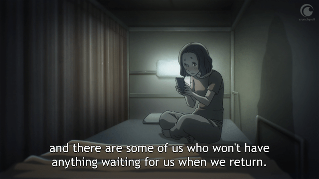I can’t shake the feeling that Nobue’s boyfriend convinced her to go to Antarctica so he could perform a super-long-distance break-up. And that seemed likely even before this incredibly ominous choice of voice-over: