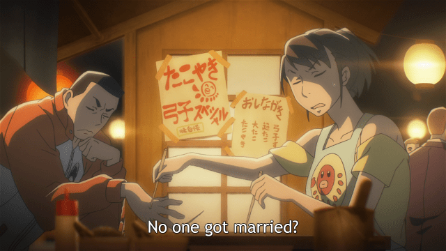 Is she too clingy? Is he cheating on her? This would be a dick move in any scenario, and, in an alternate universe, I could see this going very poorly for him. Sora Yori, though (or YoriMoi, or however we’re supposed to abbreviate it), seems like the kind of show that’d handle such a situation by taking the high road, which would probably involve Nobue re-forging herself in the [inaptly frigid] wilderness into a strong, independent woman who don’t need no man.