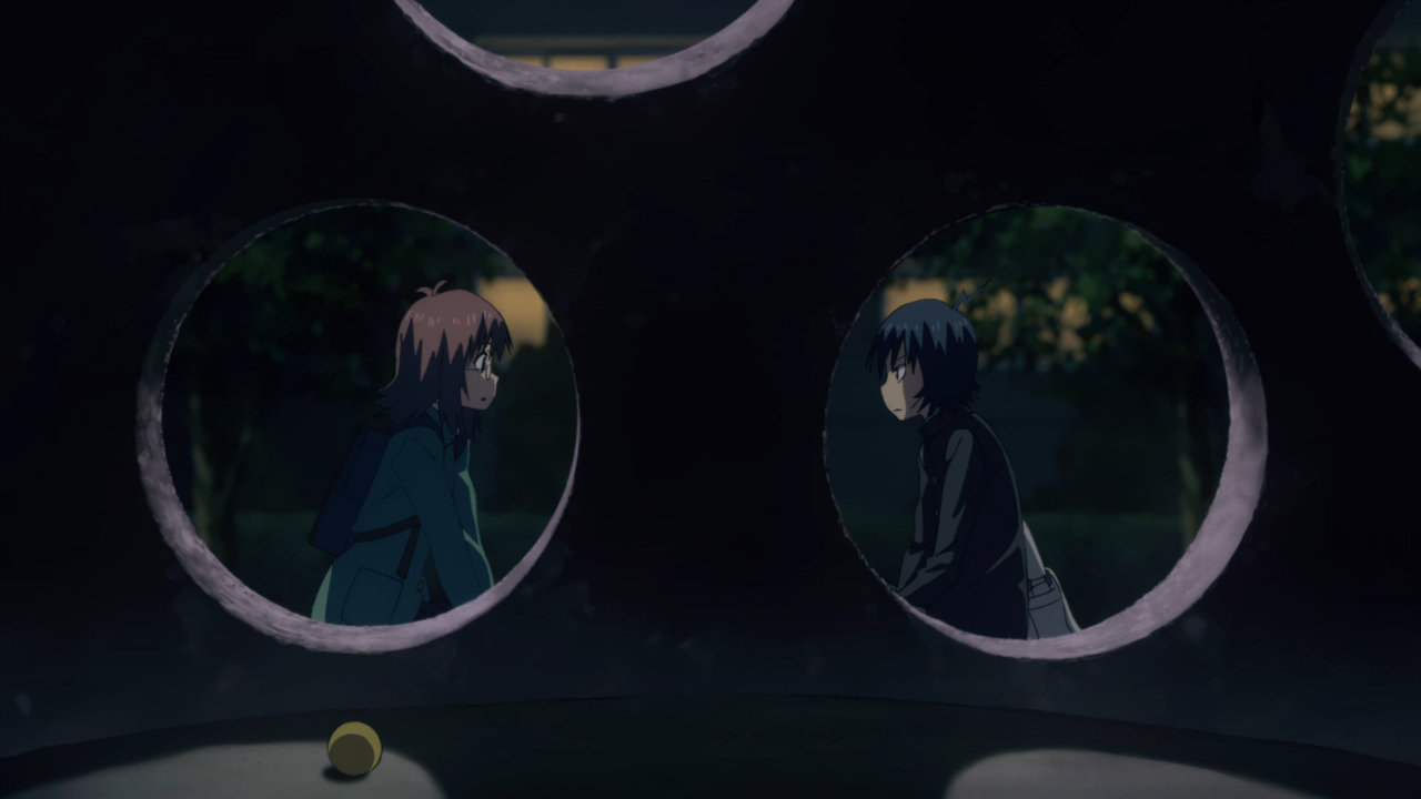 There’s an interesting symmetry in this episode relating to truth-telling. When Soya comes clean to Nozo, he offers an avenue of plausible deniability by immediately suggesting that he was pranking her, and that only a “goof” (in the Crunchyroll subs), or, at any rate, a word that Nozo calls out as old-fashioned, would believe such a story. This causes us to see in a new light a story that Takezo told Yosuke at the beginning of the episode. After he stated that Takashi was found by him and his late wife in a meteorite crater, he immediately dismissed the tale as fiction and chided his final armed comrade as a “goof” for believing the story. At the time, there was no particular reason to believe him, but Soya’s use of the exact same tactic for a tale that we know to be true strongly suggests that Takashi’s creepy eyes are indeed indicative of an extra-terrestrial origin.