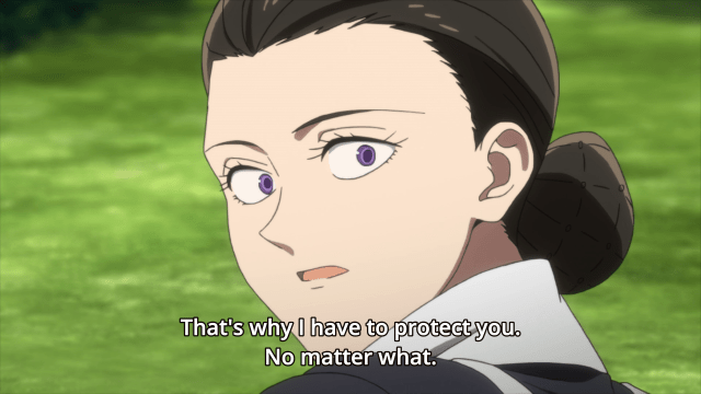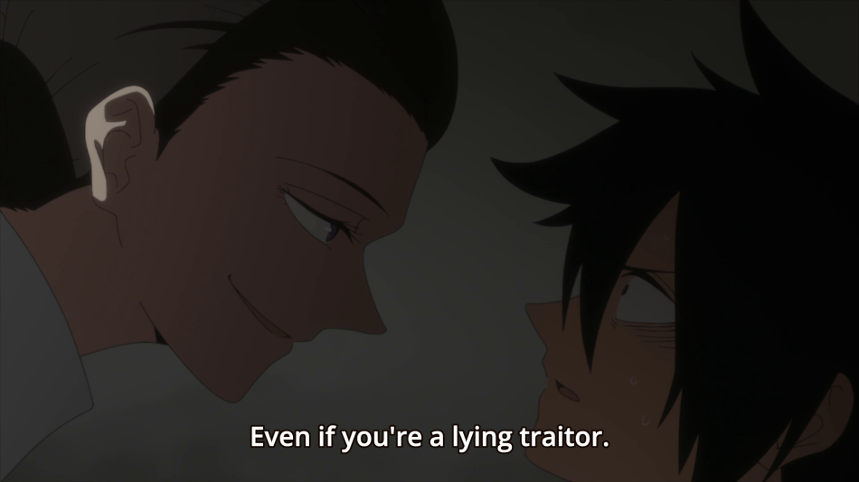 After Krone is out of the way, the rest of the episode focuses on Isabella asserting her power over Ray, Emma and Norman. Unlike Krone, whose friendly facade cracks at the drop of a hat, Isabella remains calm and collected throughout. Her cold confidence makes her incredibly intimidating, and when she finally shows her physical superiority to the kids, it confirms everything we’ve come to fear.