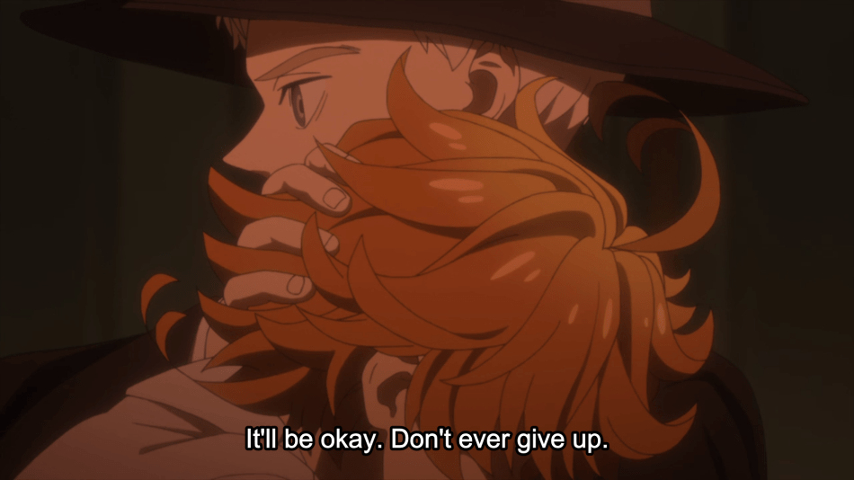 As something of a side note, the kids may (emphasis on may) have a tracker-disabling device that has escaped Isabella’s notice, but she still has a very important piece of information hidden from them: the value of the timing of the harvest of the primary trio. If Emma is to be one of “the supreme goods that will be offered at the Tifari” (as Grandma put it in Episode 3), Isabella probably wouldn’t kill her now, just as she probably hasn’t yet killed Norman (Habeas Corpus!). Since Emma only knows that kids get shipped before they turn twelve, the threat seems to still be effective.