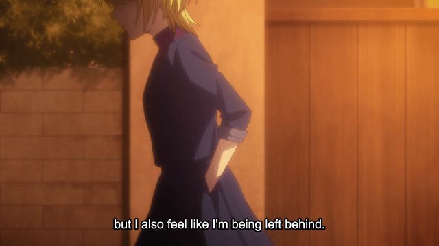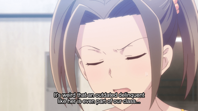 It shouldn’t be much of a surprise that this has been my most-anticipated chapter thus far (which might not be strictly fair, since few of the show’s other plot points have lent themselves to this kind of speculation for as long as this one has), and so far it’s going very well. The first half of the episode is a good excuse to get the male leads together in a mildly embarrassing situation where they can butt heads with each other and with Tohru’s friends, and it leads organically to the main event of Arisa giving a frank accounting of her middle school days.