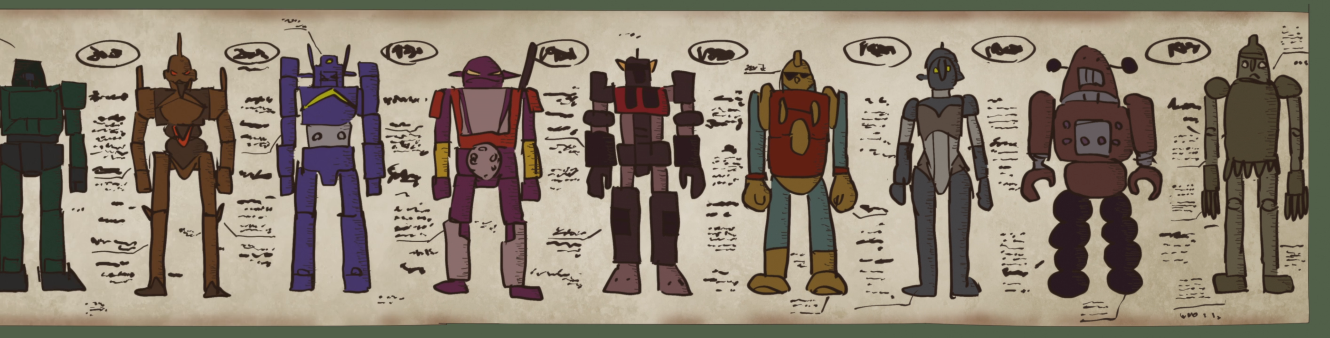 Another bit that goes by pretty quickly is the scroll of the Robot Club robot’s history, all the way back to its original creation by enthusiasts of the old French film The King and the Mockingbird, which is a very real thing (just like the novel The Future Eve and the automaton Gakutensoku – these folks dug deep). Interestingly, the “shift in the group’s focus to giant robots” didn’t seem to hold for the second and third designs, which were pretty obviously modeled after the more human-sized figures from Lost in Space [Edit: Forbidden Planet] and Fritz Lang’s Metropolis, respectively.