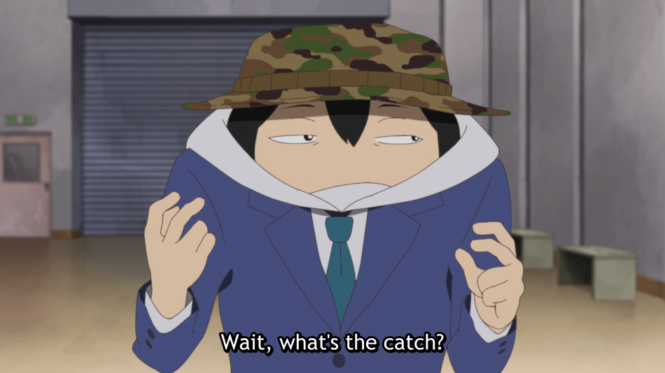 One bit that I thought went under-explored was Asakusa’s attempt to combine the Japanese words for turtle (kame) and crab (kani) by taking the first character of one and joining it with the second character of the other, ultimately resulting in… kani (crab). It’s not really translatable, but nobody calls her out on it even after she says it out loud, which makes me conflicted because I do appreciate the subtlety but I was kind of hoping for a raised eyebrow or something. Cut for time, perhaps.