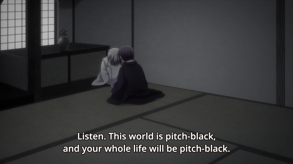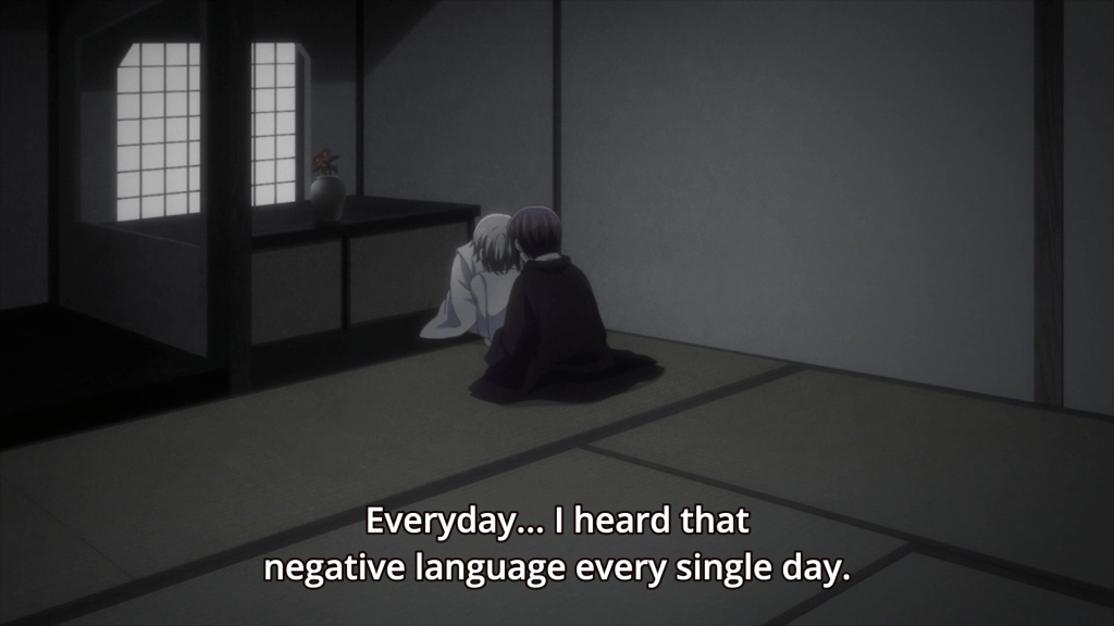 When learning about Yuki’s childhood in the Soma household, and his abuse at the hands of Akito, we have been given what I’ll call the “spotlight treatment”. The writers have shone a beam of light on a particular subject like, Yuki sitting by himself in a dark room, or young Yuki being abandoned by his mom. Yuki himself has given cryptic verbal cues when speaking about his life. So much so that I began to wonder if he was previously capable of formulating what he truly desires into full statements. Episode 21 turns on the floodlights and we’re able to see his whole story, tip to tail, in all its tragic glory.