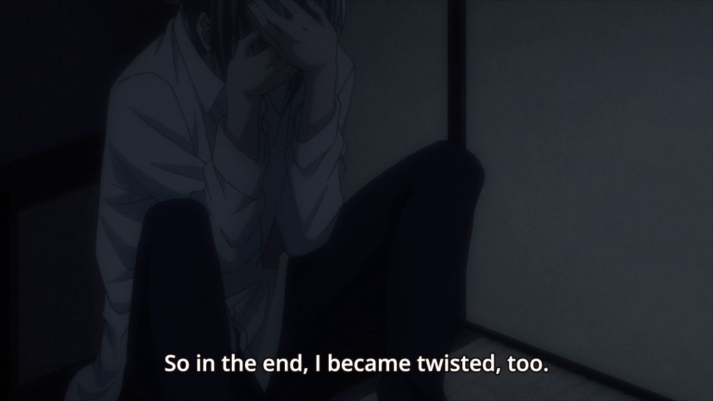 Yuki’s struggles culminate in two hard hitting moments. The first, is the moment when he meets Tohru as a child. His elation at being useful for the first time in his life makes you tear up a bit. The second, I mentioned previously. We learn the secret to what he’s always sought out of Tohru. It’s a seemingly simple thing, but it’s poignant and heartbreaking that this is what he yearns for, and this is what he feels guilt for asking for.