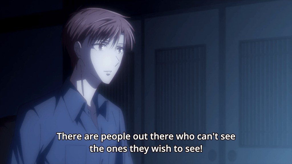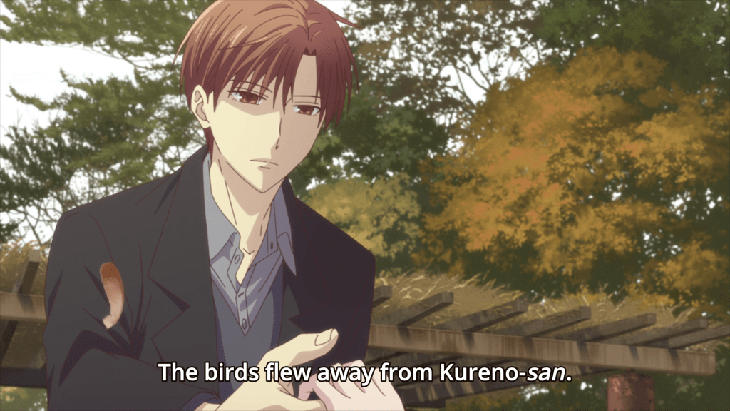 Regardless, this is a great episode. The reveal of Kureno’s…state…is heavy and twists the dynamic we’ve understood up until now. We’ve all had equal parts pity or disdain for the cursed members of the Sohma family (the disdain award goes to Shigure). We have not however, introduced the idea of survivors guilt. The show has been gearing us up for some curse breaking action. It’s the goal behind the actions of multiple characters, and even though we don’t know the full nature of the curse, it must be a burden, right?! Right!? But what happens when the curse breaks and you are suddenly able to see the world clear as day? Able to want things for yourself? Unable to suffer like you are supposed to?