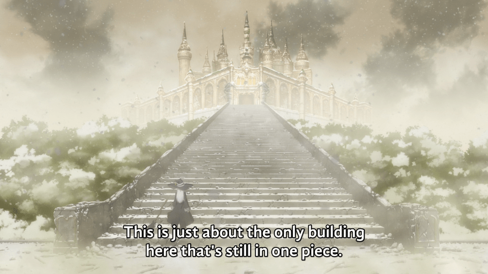 I’ll end with what I think is a potential take away here. When Elaina enters this broken kingdom, there is a monster therein that has wrought destruction and murder. When Elaina leaves the kingdom, that monster is still there. This took me forever to think about. Let’s hope the show’s upcoming vignettes are stronger than this one.