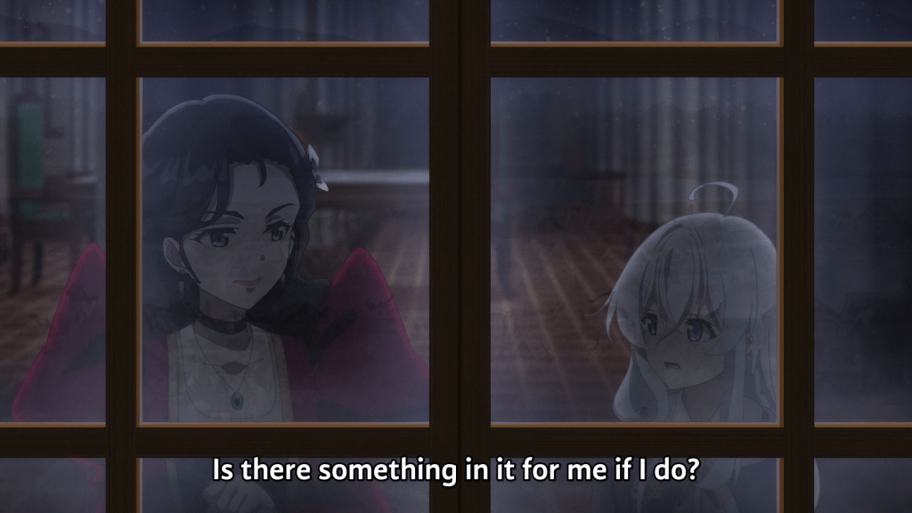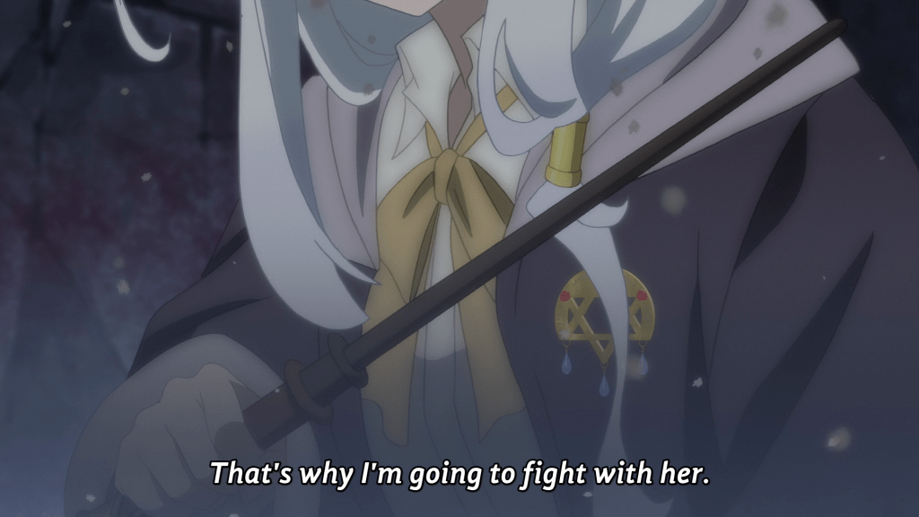 From a narrative perspective, Elaina isn’t going to stick around to feel the impact of Mirarosé’s choices, nor does she seem particularly disturbed by the whole scenario. It’s like the episode knew it wanted a revenge story but was too lazy to write it, so it just hand waved some hints of tragedy in your face and called it a day.