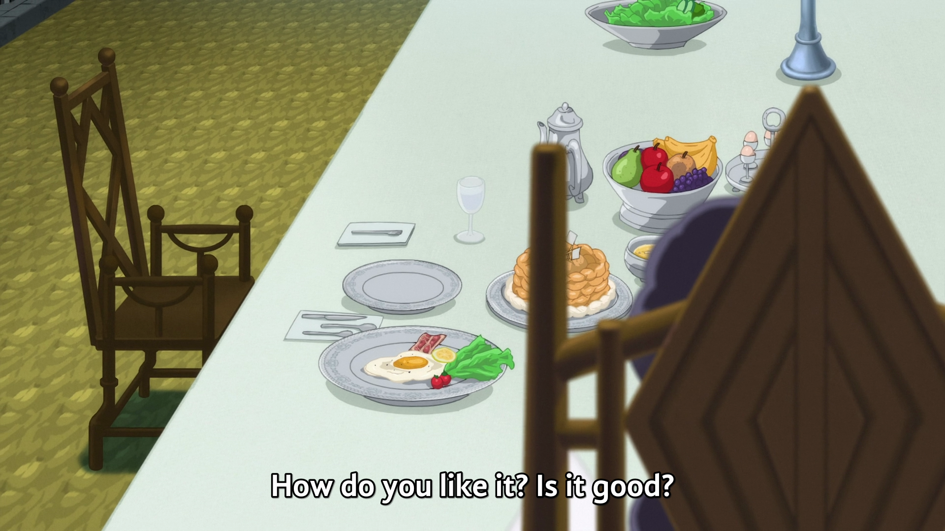 To top it all off, the ending is nonsense. Mirarosé just has crazy dinner with her imaginary…family? It’s totally unprecedented and comes out of nowhere. This woman is like the Über Witch and then suddenly goes Snap, Crackle, Pop Rice Kripies loopy at the end of the episode. Girl seemed pretty lucid to me while she murdered the bejezus out of Javalier. What happened?