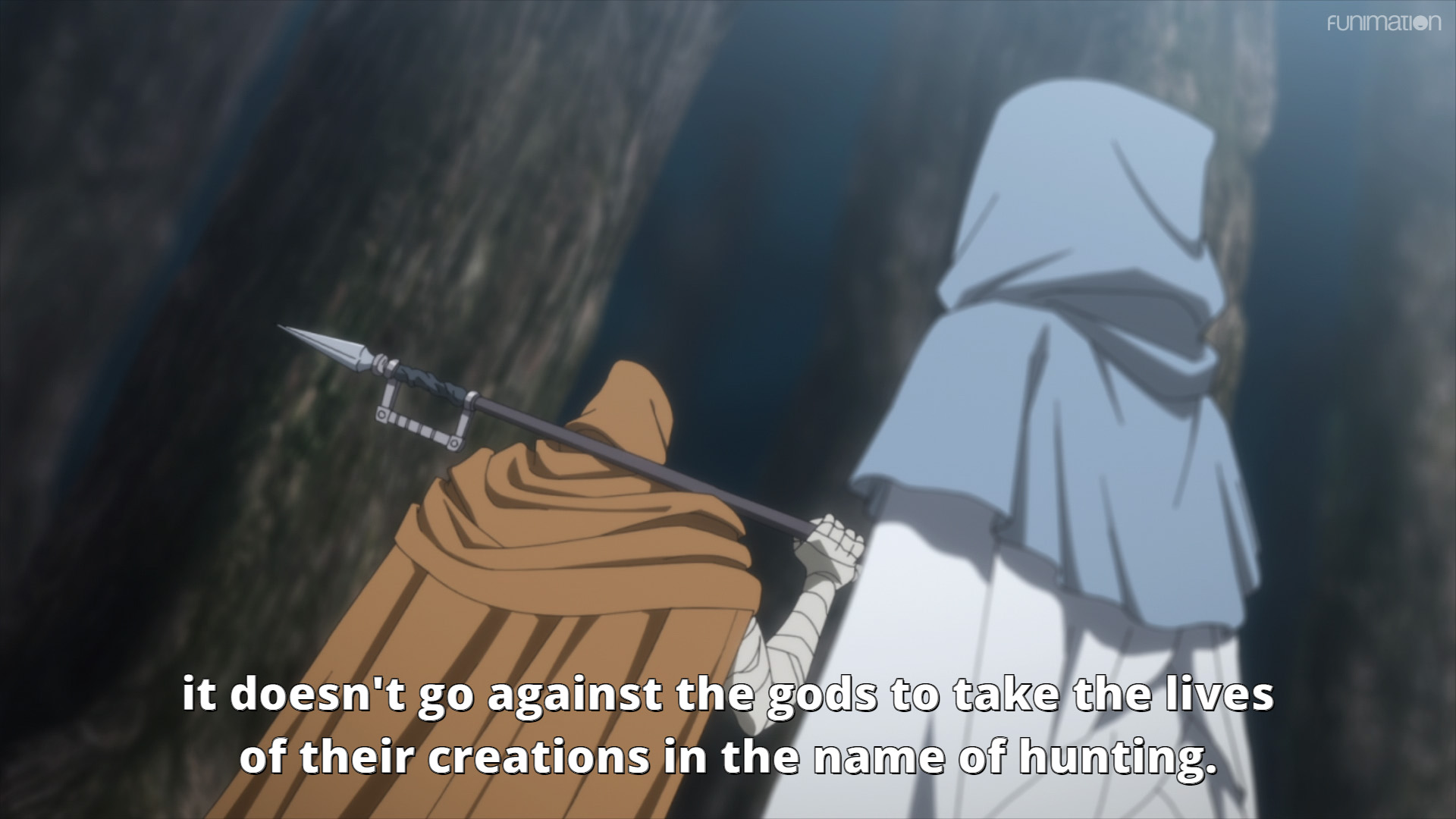 I’d half-expected Sonju and Mujika to try and eat the children themselves, so I’m glad the reveal was more nuanced than that. Mujika also seems less than on-board with her companion’s plan, so there’s plenty of room for things to change between now and if/when they encounter the kids again. It also makes me wonder if Sonju is truly patient enough to wait over a decade for “wild” humans to appear, or if circumstances will push him to break his faith. For now, he seems to be satisfied with protecting the flock for his own eventual use.