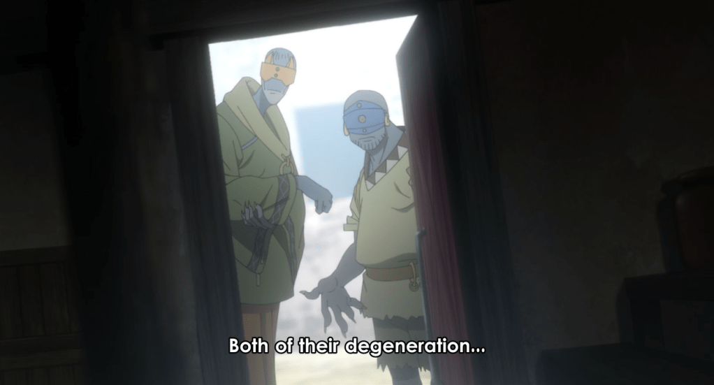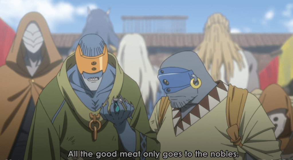 After all this, you can bet I was agitated when things immediately went south in the marketplace. Alright, my complaining is done. The other idea that’s brought up in this episode almost makes up for the bad character writing and ridiculous time skip/plot handwaving mentioned previously. By following two bumbling demon brothers (dads?), we hear a mention that A.) There’s an upper echelon of demons who are taking all the prime meat for themselves and B.) The lack of prime child meat means something bad for the psychological state of demons who cannot afford it.