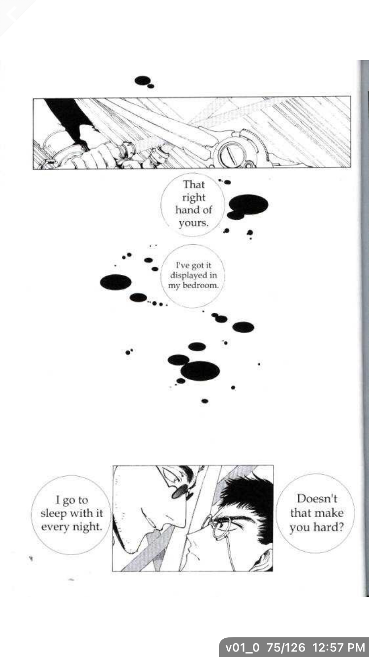 I won’t comment much on the plot because I haven’t gotten far (only 126 pages in) but suffice to say I love that the story drops you right in and kick starts the adventure as soon as possible. I don’t know the two warring sides (I’m unclear if they even matter) but I feel a connection to Kazuhiko and Sue. The first 120 pages or so really sell their loneliness. The fact that they can rely on each other, even a little bit is this gentle, soft feeling in a world that’s so mechanized and robotic. A flower amongst a metal city.