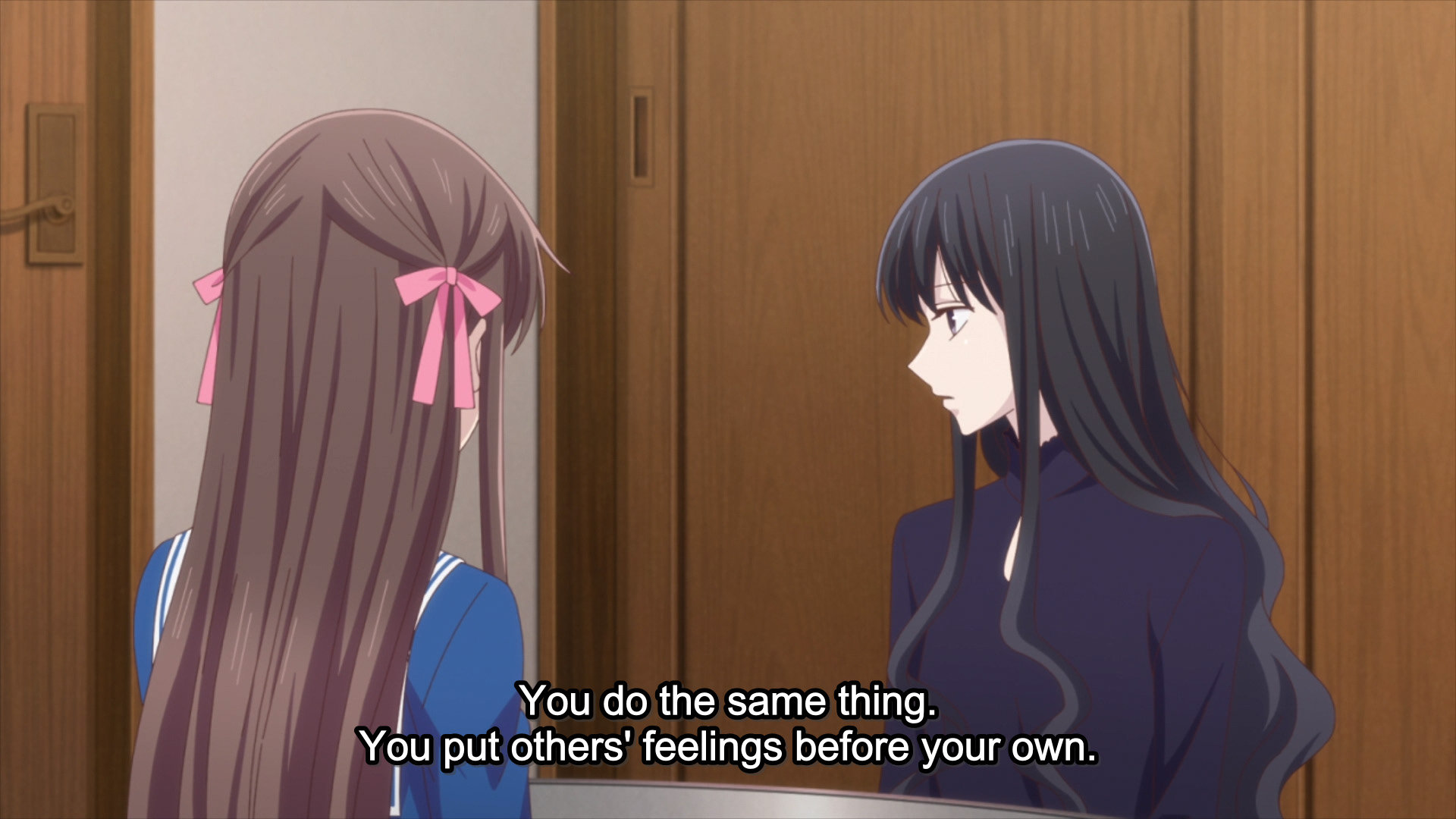 The latter half of the episode moves on from the Somas and focusing on Tohru, Saki and Arisa. Proving once again to be THE BEST FRIEND, Saki brings Tohru home for a slumber party and a chance to work through her sadness and sense of powerlessness. She reiterates what others have been telling Tohru throughout the series; her taking all of these emotional burdens from those around her is crushing her, and she needs to trust that her friends can and will work through things. They love her and appreciate her help, but not at the expense of her health.