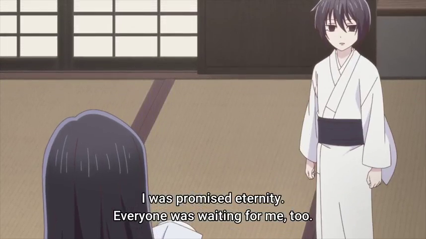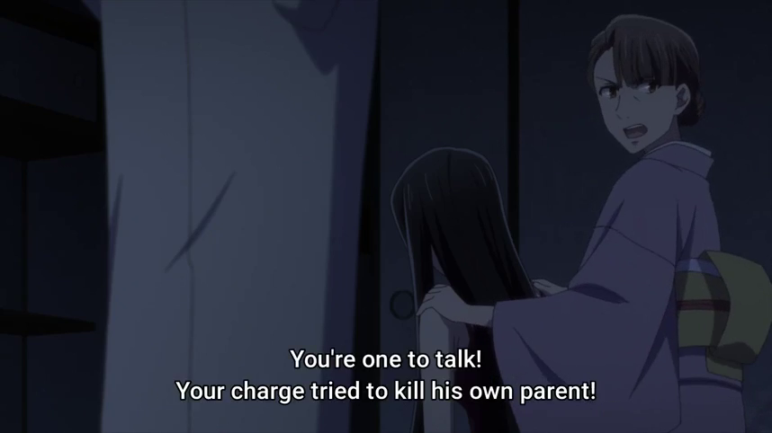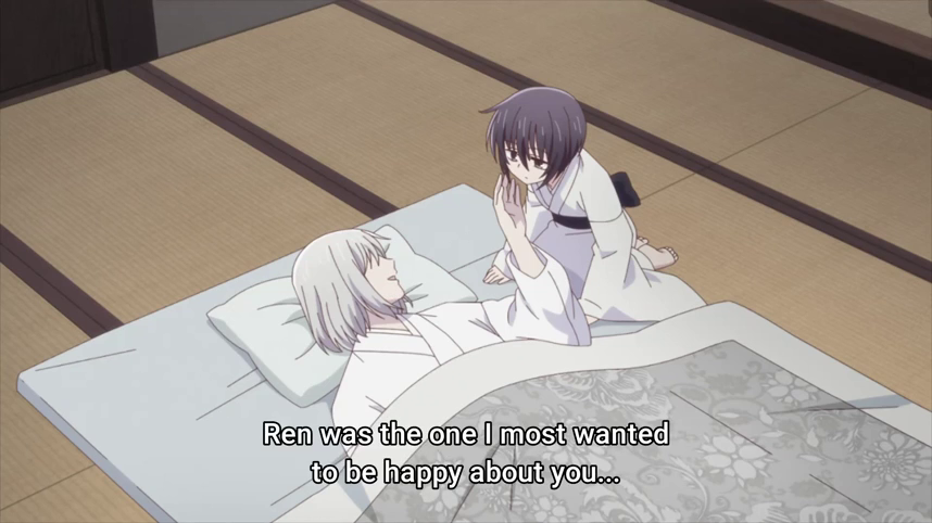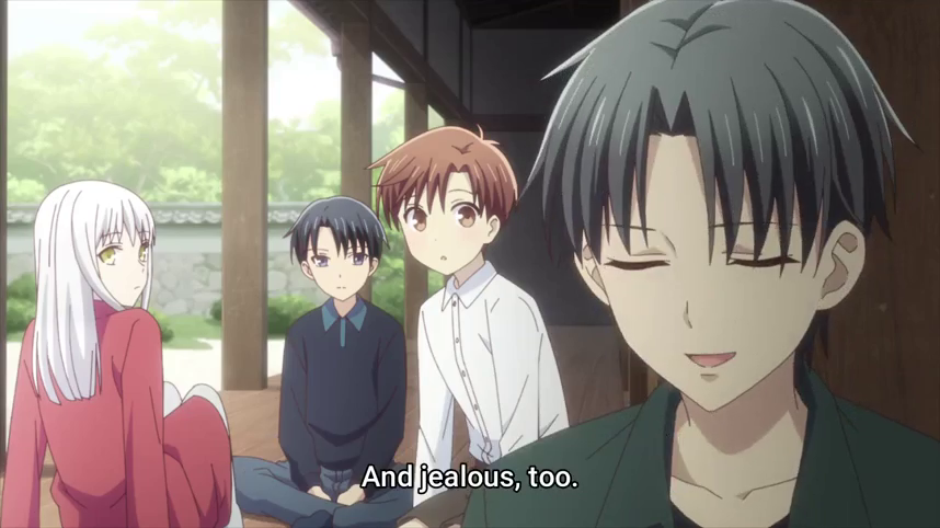 What I do want to talk about is something very impressive that Fruits Basket pulled off this episode, and which very, very few shows do successfully even in that small set where they try. Fruits Basket does not have a capital-V Villain. Sure, it has multiple people acting villainously. But none of them is the mastermind, the Big Boss pulling the strings, and that seems unlikely to change (unless the guy that created the curse somehow shows up as a ghost or something).