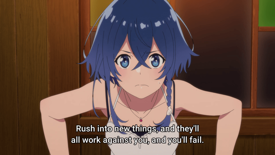 But who is making these arrangements? Is Kukuru’s grandfather’s decision to shut the place down the only impediment to it staying open? It just feels weird that every day Kukuru is shouting “I don’t want to see Gama Gama shut down”… to the guy shutting it down, who nods sagely and smiles at her, and then they have dinner together. Is the whole point of all this to convince him to keep it open and let Kukuru run it? Because the show makes it feel like Kukuru is struggling against some ill-defined “them” that’s going to close it down, and it’s hard to reconcile all of her planning and charts and events with the fact that “them” might just be her grandfather. It’s hard to put into words, but it feels like the whole time she’s been trying to hit some tangible goal (number of patrons per day, or amount of money saved), but I really have no idea what the conditions are that would let the place stay open, and it’s bugging me. Hopefully that becomes clear soon.