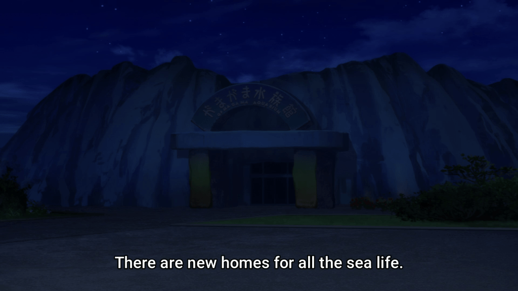 Lastly, there is something I’m starting to hold against the show. Kukuru is fighting to save the aquarium from being shut down… but who or what is she fighting against? The stakes here just don’t seem that clear. There’s a date of “the end of summer”… but what happens on that date? The equipment is old and troubled, but it’s not going to die all at once. The fish apparently have new homes to go to: