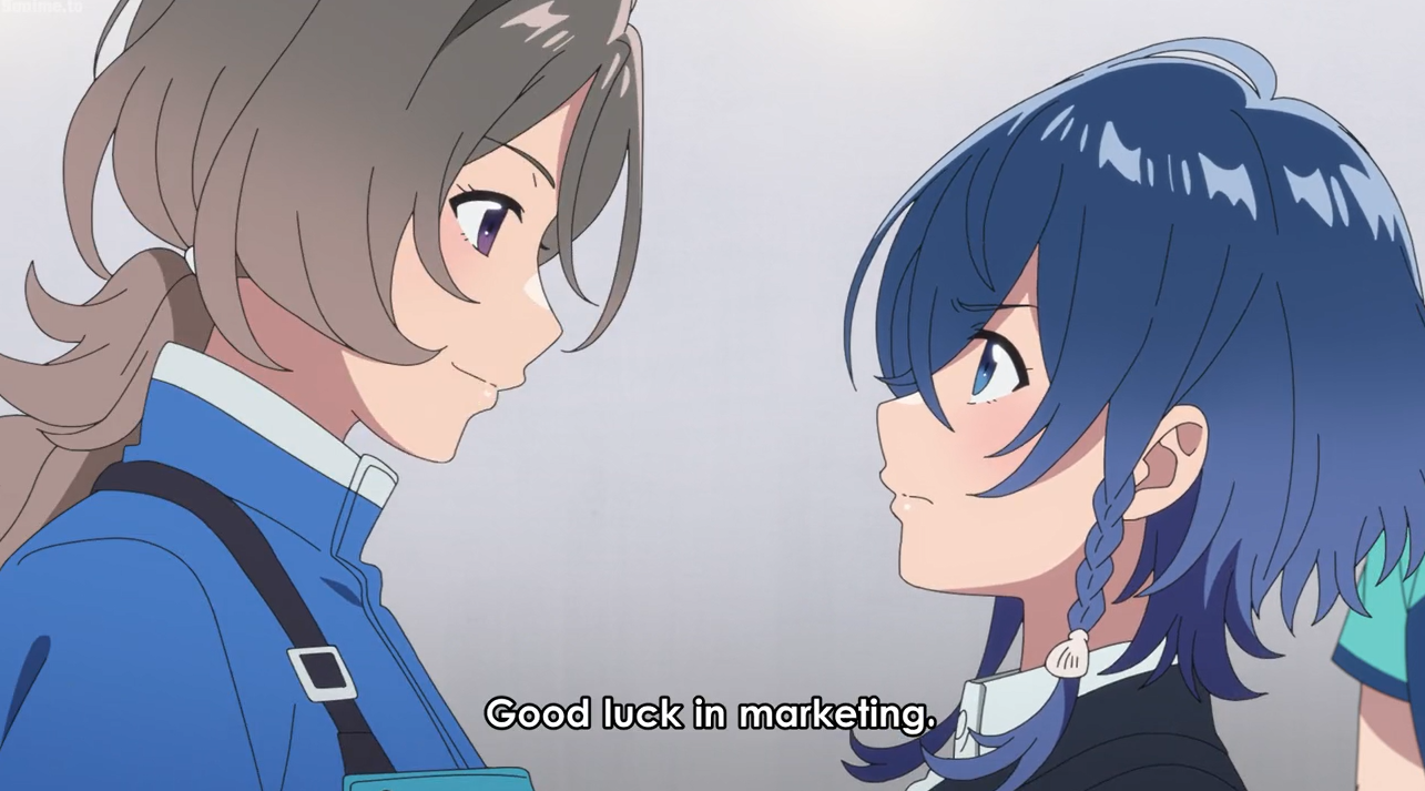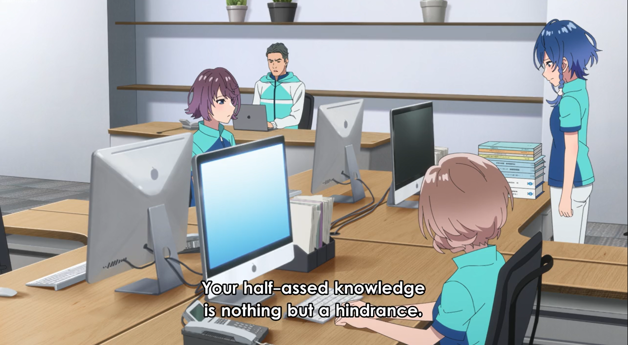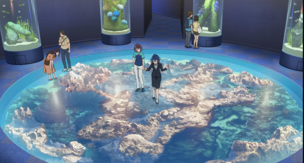 She bombs her first task involving prepping for a back room tour of the aquarium. She also gets smacked around by none other than Chiyu who deserves an award labeled “Best Smug AF Girl”. It’s going to take a lot of effort for Kukuru to overcome her old ways and learn to navigate the corporate politics/personnel drama in Tingaara. It’s a very rough ride and I appreciate how real it all felt, and how little grace Kukuru is given here.