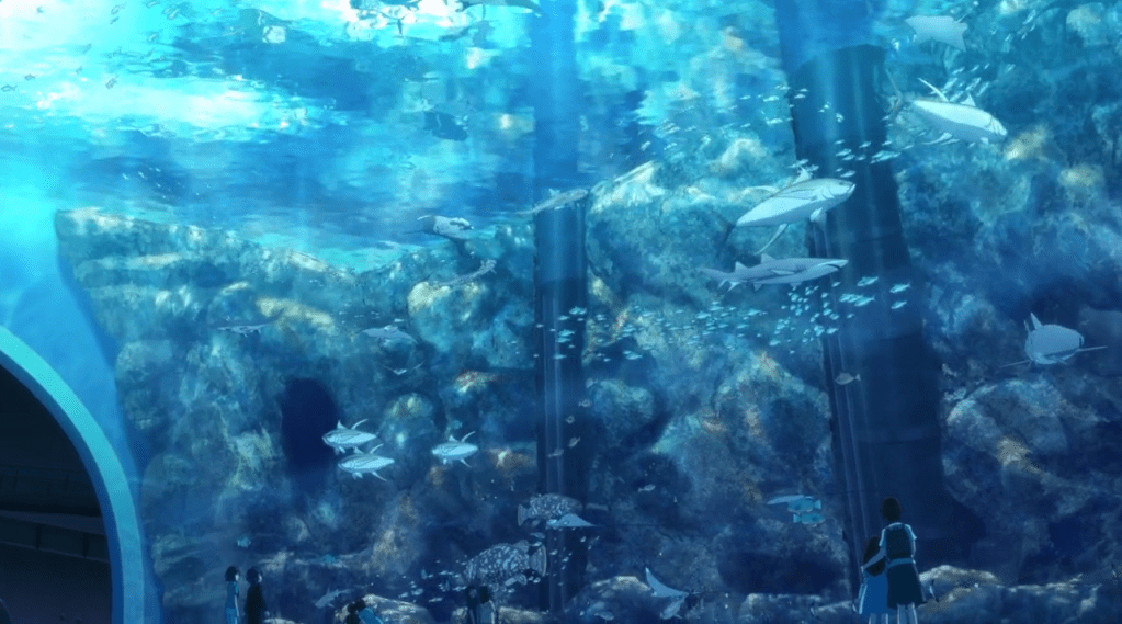 I also loved just hanging out at the aquarium in this episode. The art team for this show clearly did research and have designed a gorgeous theoretical establishment. I live near a large aquarium so everything about these montage shots made me want to go back and visit it for the tenth time.