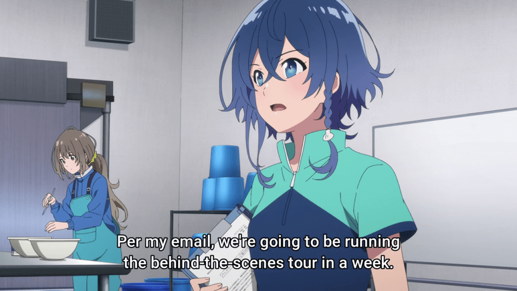 We’re starting to get into the swing of things in the second half of Aquatope, with characters settling into their new roles at the Tingaara Aquarium. Most of the focus is on Kukuru, and her fight to work underneath her difficult new boss while trying to coordinate between the different groups at the aquarium. This part is well done, with each group prioritizing its own interests in a believable way: The backroom prep staff are struggling to keep up with their everyday work since they’ve just started operations, the penguin handlers are concerned that the penguins are too agitated in their new surrounding to handle the additional stress of visitors, and Kukuru trying to get them all to agree to take on additional burdens so her boss will be satisfied.
