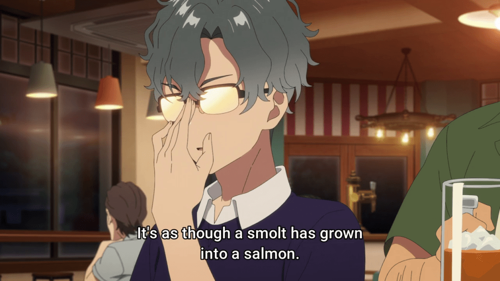 Also of note before I leave you: The new character from last episode, Eiji, is ridiculous in a fun way. Nearly every line he says is a fishing or fish metaphor, and I look forward to seeing more of them.