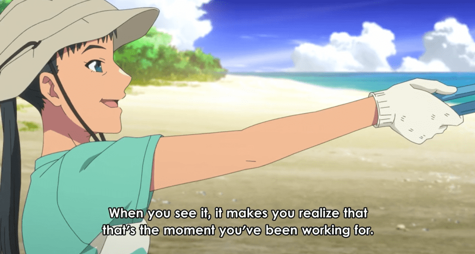 I bring this up because there’s an important statement from Misaki here which I think a lot of nature photographers/videographers resonate with. It’s the joy of getting that one big moment in an animal’s life. It’s being present to witness an event in nature that makes you feel connected to the little blue/green marble we sit on. Those singular moments make the slog worth every step. This episode starts the ball rolling on reconnecting Kukuru with why she fell in love with marine life in the first place. It also establishes Misaki as one of my new favorite people. There hasn’t been nearly enough Udon-chan’s mom recently. Misaki offers sage advice to Kukuru that basically amounts to “Listen kiddo. You’ve already bailed on work so at least relax a little and reflect on what’s got you all tangled up!”. I love this lady.