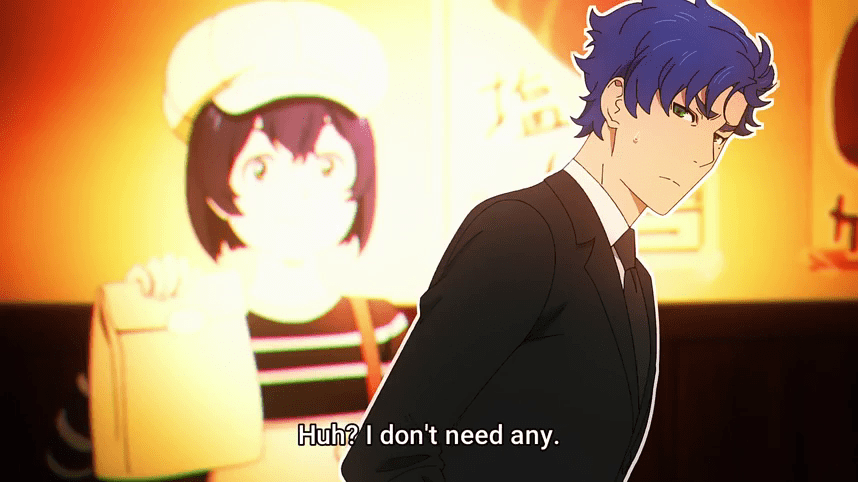Tokyo 24-ku’s first episode (which is double-length) is a real roller coaster. The beginning, as we are introduced to characters, moves slowly but with purpose, setting up who the characters are, their relations with each other, and the setting. The show uses an interesting visual technique to highlight certain moments, having characters break out into almost manga-like relief.