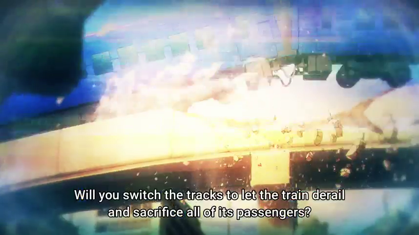 In an alternate present-day Japan, an artificially constructed island is on track to become Tokyo’s 24th ward. Three childhood friends (Shuta, Ran, and Koki) were unable to save their friend Asumi from dying in a building fire a year ago, and haven’t seen each other between then and the memorial service held on the anniversary. Shortly afterwards, they receive a call from Asumi, presenting them with a moral “trolley” dilemma, but also somehow enhancing their physical abilities. The three work together and are able to prevent both potential tragedies. Afterwards, however, the three argue fiercely over how to react to the phone call.