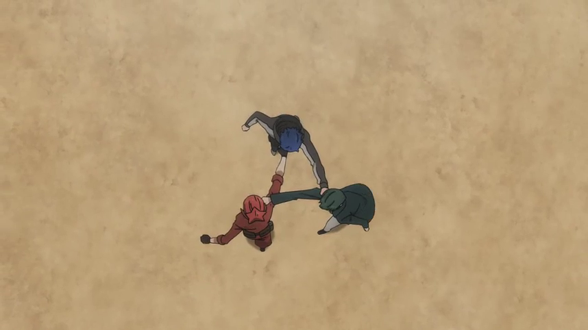 The street battles intensify. Koki, Ran, and Shu have all realized that some version of Asumi’s consciousness is inside the KANAE system, and is suffering greatly. Koki wants to put her into an eternal sleep. Ran wants to delete her along with the system. Shu isn’t sure what to do. The three of them punch each other until they agree to work together to digitize Shu’s consciousness to go talk to Asumi’s consciousness.