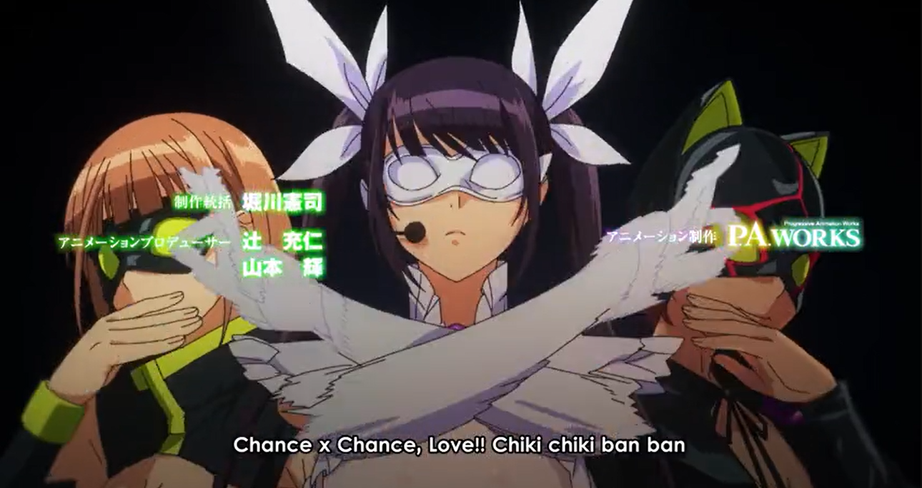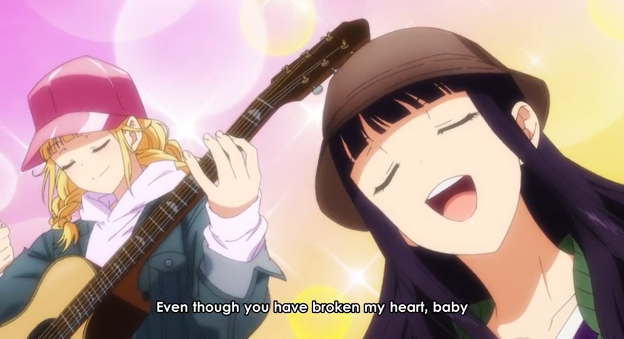 As a last note, the show continues to look great and I enjoy the music when it appears. Nanami’s acoustic street performance was very pleasant, and very Engrish. I continue to be amazed at the sheer amount of English in these songs. I’m excited for Operation: Plan for Peace Throughout the World and I can’t wait to see what complications arise now that Eiko unknowingly made contact with “the enemy”. As a super last note, I think it’s adorable that the ED song’s animation has changed to include chibi Nanami’s appearance at the bar. Such a nice little touch of detail!
