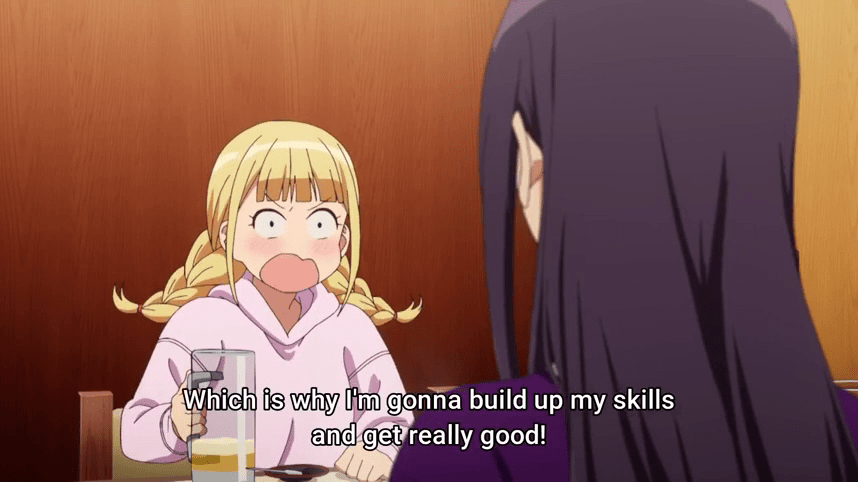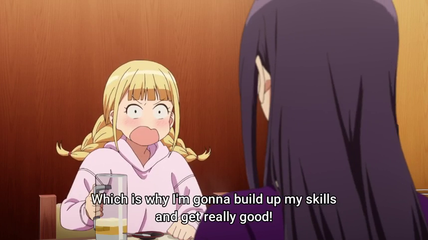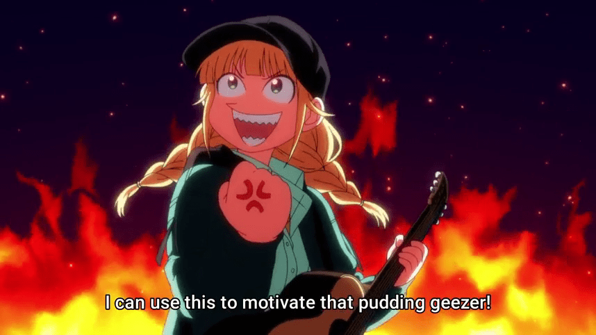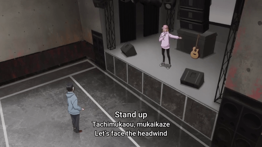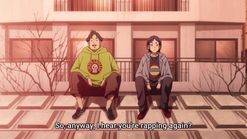 This episode, much like Episode 5, is a setup episode, but it does a much better job than 5 did at being entertaining on its own merits. Rather than rehash Kabetaijin’s backstory four times, we instead watch Eiko improve at singing as Nanami teaches her, see the two girls grow closer together, and see Kabetaijin rediscovering why he began rapping in the first place.