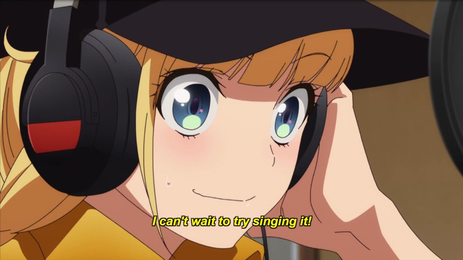 Once the rap battle is finished, it’s time for Eiko to begin recording with DJ Kido. We only get to listen to a small sample of the new arrangement, but even that little bit is promising. It has an odd, timeless quality that I can’t quite put my finger on, and I’m excited to finally hear the entire song. It’s also great to hear Eiko singing her own song again after relying so heavily on a single cover for the middle part of the show.