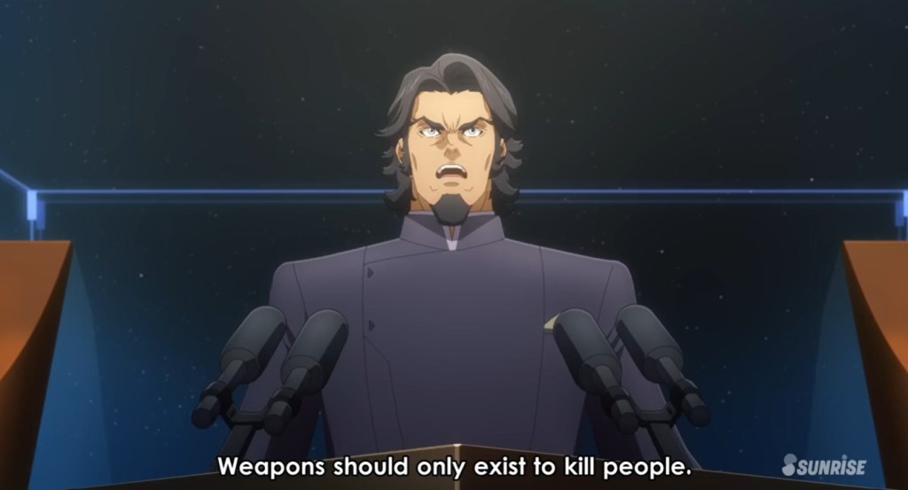 Even if Vanadis was manufacturing the Mobiles Suits and they were causing harm, it’s the clients that buy them that are ultimately the problem. I fail to understand how military hardass Delling has enough authority to murder a swath of people due to his beliefs. It’s clear the Mobile Suit Council isn’t pleased with Ochs Earth but murder wasn’t on anyone’s agenda until Delling decided it was necessary.