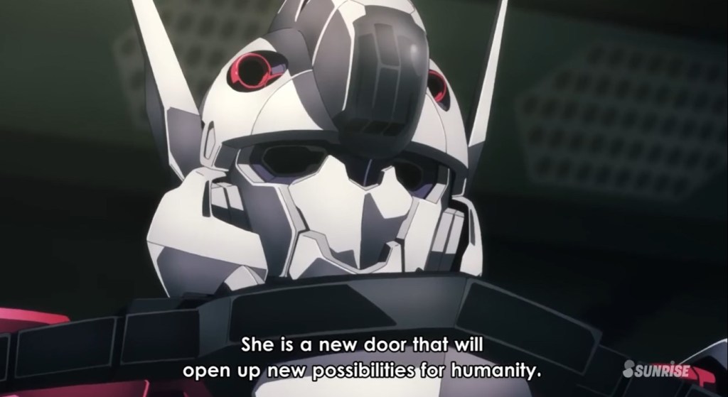 [1] For everyone who’s about to scream, I am aware that Witch of Mercury is not the first time a female has piloted a mech. Characters like Sayla Mass, Allenby Beardsley, and Lucrezia Noin all come to mind. No torches and pitchforks please!