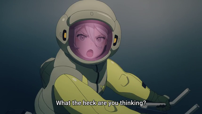 Suletta’s mech vaguely looked like it might be a Gundam and the Gundam Police or whatever showed up sirens-a-blarin’. I somehow suspect the same thing won’t happen to Elan at the start of Episode 6. Are we really going to start ignoring our premise already?