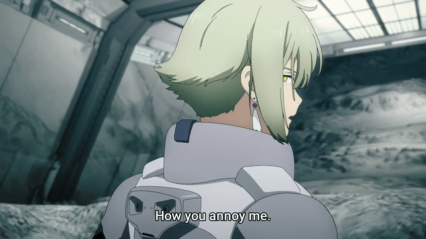 Once again the stakes are so high that they might as well not bother. It would be equally valid to say “If I win this duel, the show ends here”. Why not have some normal stakes, so I as a viewer can believe that Suletta has a chance of losing?