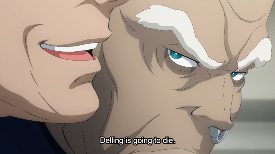 Two months have passed since the Aerial was sent for repairs, and it is due to return. The head of Grassley addresses the regulatory body responsible for cracking down on Gundams only to find that they have no intention of prosecuting Shin Sei Development (nor Peil Technologies, as far as I can tell). The head of Jeturk lets him in on a plot to assassinate Delling. This information is passed to Shaddiq, who decides to tighten the noose by calling up some Earthian mercenaries over Nika’s communication channel.