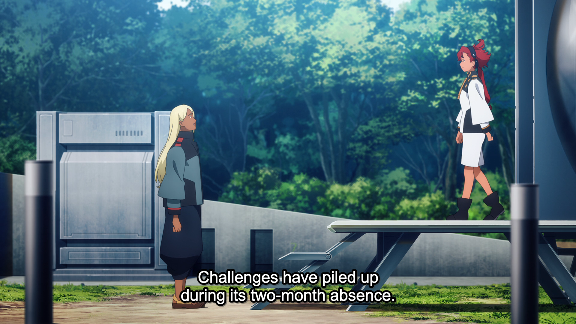 Challenges to the Gundam have piled up. To the mobile suit with the mentally-directed drone swarm powered by illegal super-technology that just finished thrashing the top dogs of all three major divisions of the conglomerate back to back TO BACK. Challenges to Aerial. Have piled up.